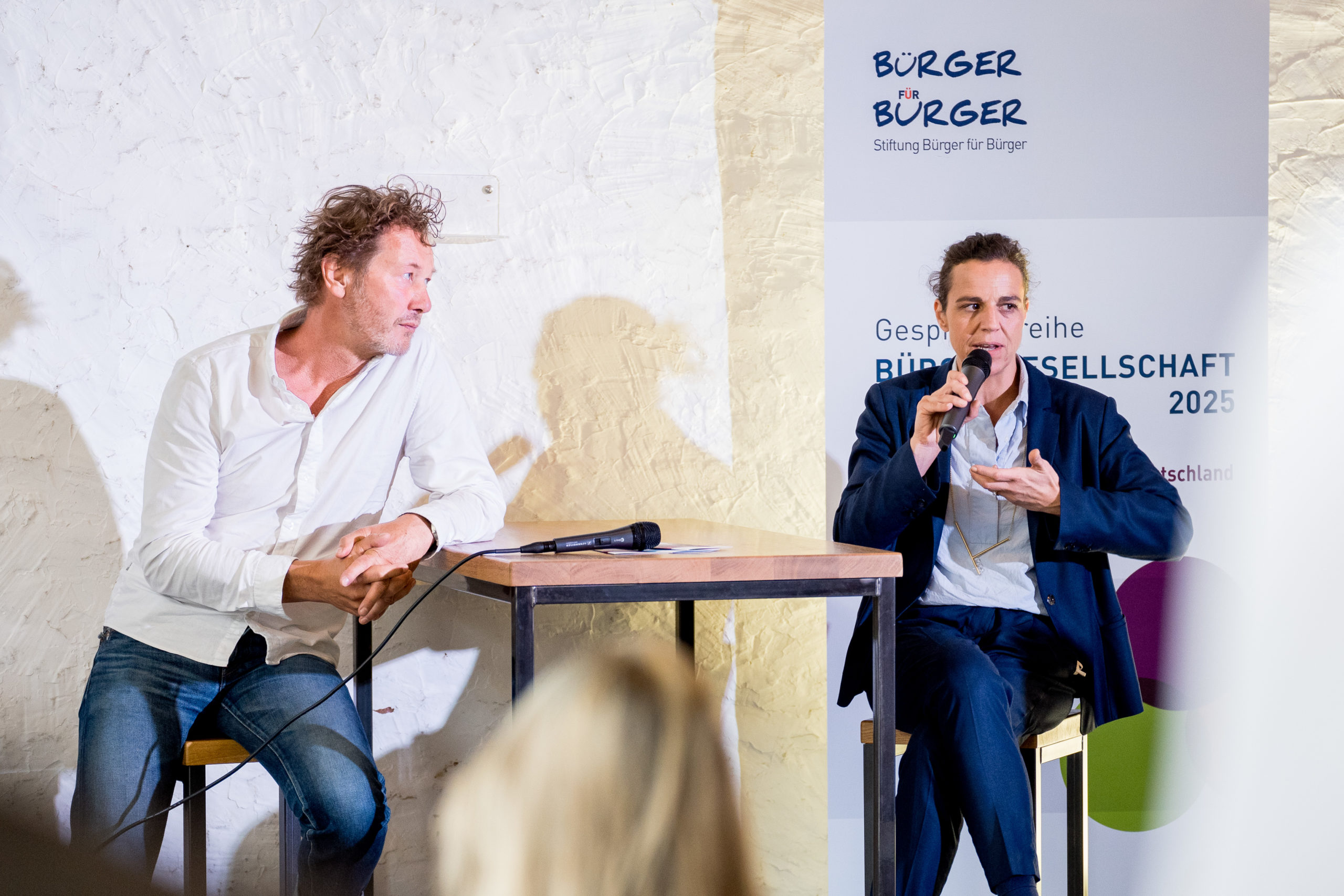 Gelegenheit, diese Ideen zu vertiefen, bot die anschließende Podiumsdiskussion zur Zukunft der deutschen Einheit mit Susi Möbbeck (Staatssekretärin im Ministerium für Arbeit, Soziales und Integration des Landes Sachsen Anhalt), Prof. Dr. Roland Roth (Politikwissenschaftler) und Katharina Warda (Soziologin). Letztere erklärte: Schon die Idee „bürgerschaftlichen Engagements“ sei westdeutsch geprägt. Auch in der DDR und im Osten der 1990er-Jahre habe es bereits Engagement gegeben, es sah nur nicht so „bürgerlich“ aus. Doch Parteien und Vereine, so Roland Roth, seien im Osten lokal weniger verankert. Auch politische Mitsprachemöglichkeiten werden in den ostdeutschen Bundesländern laut Deutschland-Monitor schlechter eingeschätzt als in den westdeutschen Ländern. Susi Möbbeck betonte: „Die Menschen müssen Selbstwirksamkeitserfahrungen im demokratischen Prozess machen“. Bei Demokratieförderung, so die Staatssekretärin, dürfe es daher nicht mehr nur um Rechtsextremismus-Prävention gehen, sondern darum, dass sich mehr Menschen aktiv beteiligen und Gehör finden.