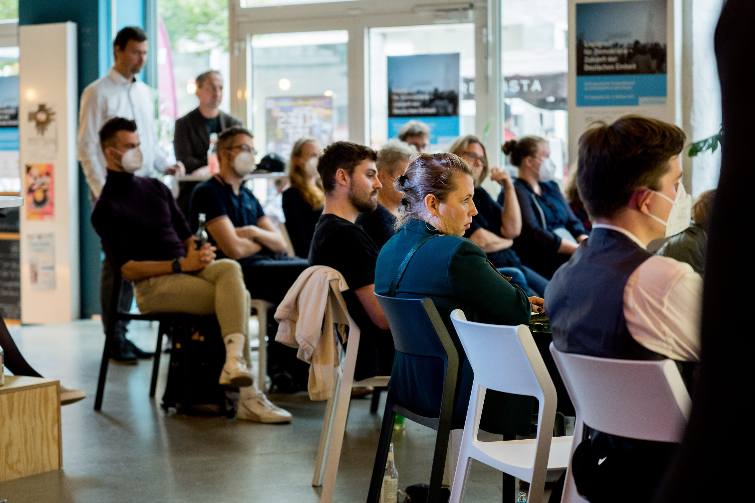 In den 16 Tagen der Großraumausstellung haben wir zusammen mit dem Landesnetzwerk der Migrantenorganisationen, der Freiwilligen-Agentur Halle, dem Friedenskreis Halle, dem Verband der Migrantenorganisationen Halle, der Hallianz für Vielfalt und dem Evangelischem Kirchkreis Halle-Saalkreis zehn sehr unterschiedliche Veranstaltungen organisiert, die Gelegenheit boten, miteinander ins Gespräch zu kommen und darüber zu diskutieren, wie die Zukunft der Deutschen Einheit gestaltet werden kann. Das Programm wurde unterstützt von der Deutschen Stiftung für Engagement und Ehrenamt.