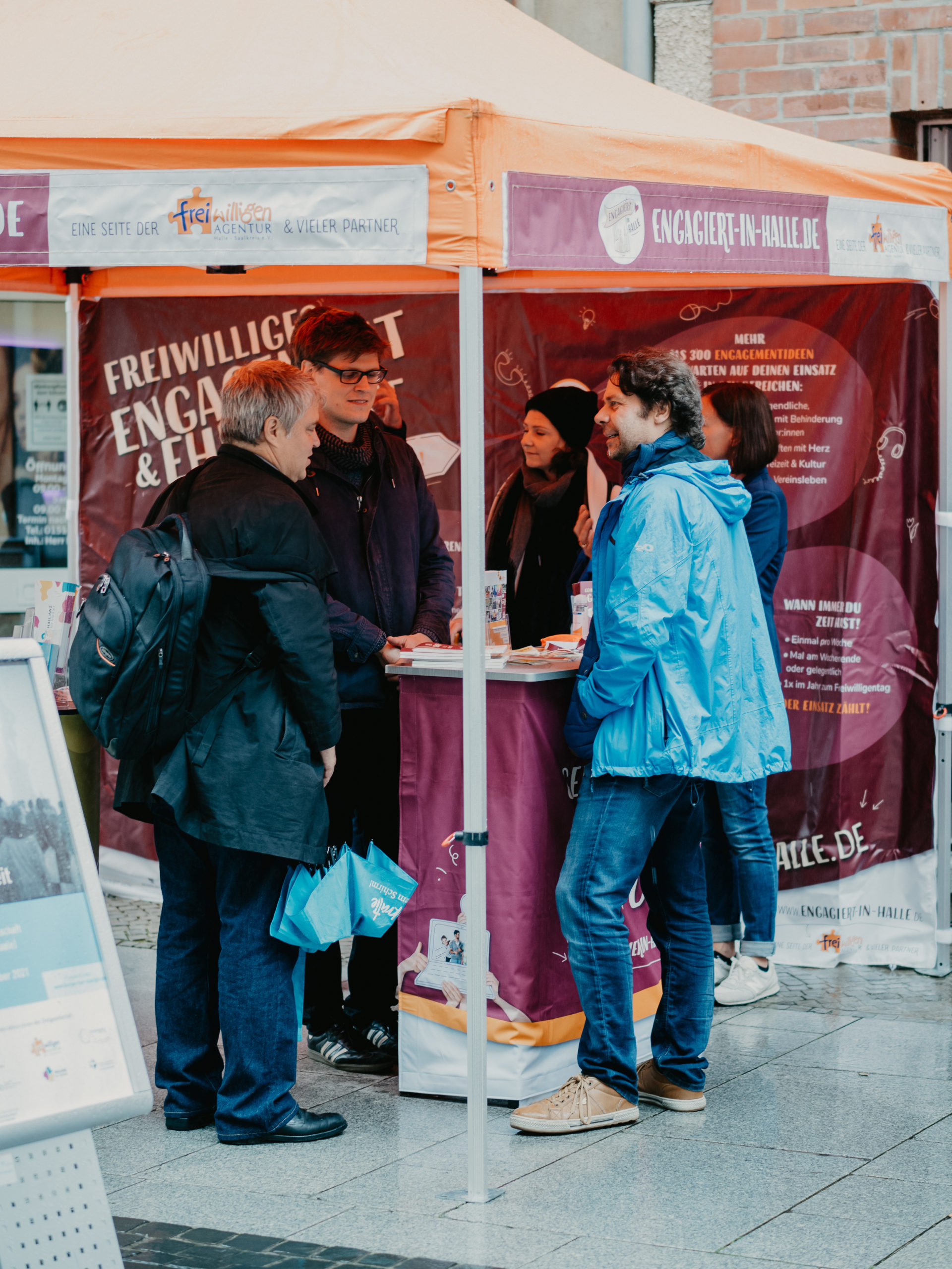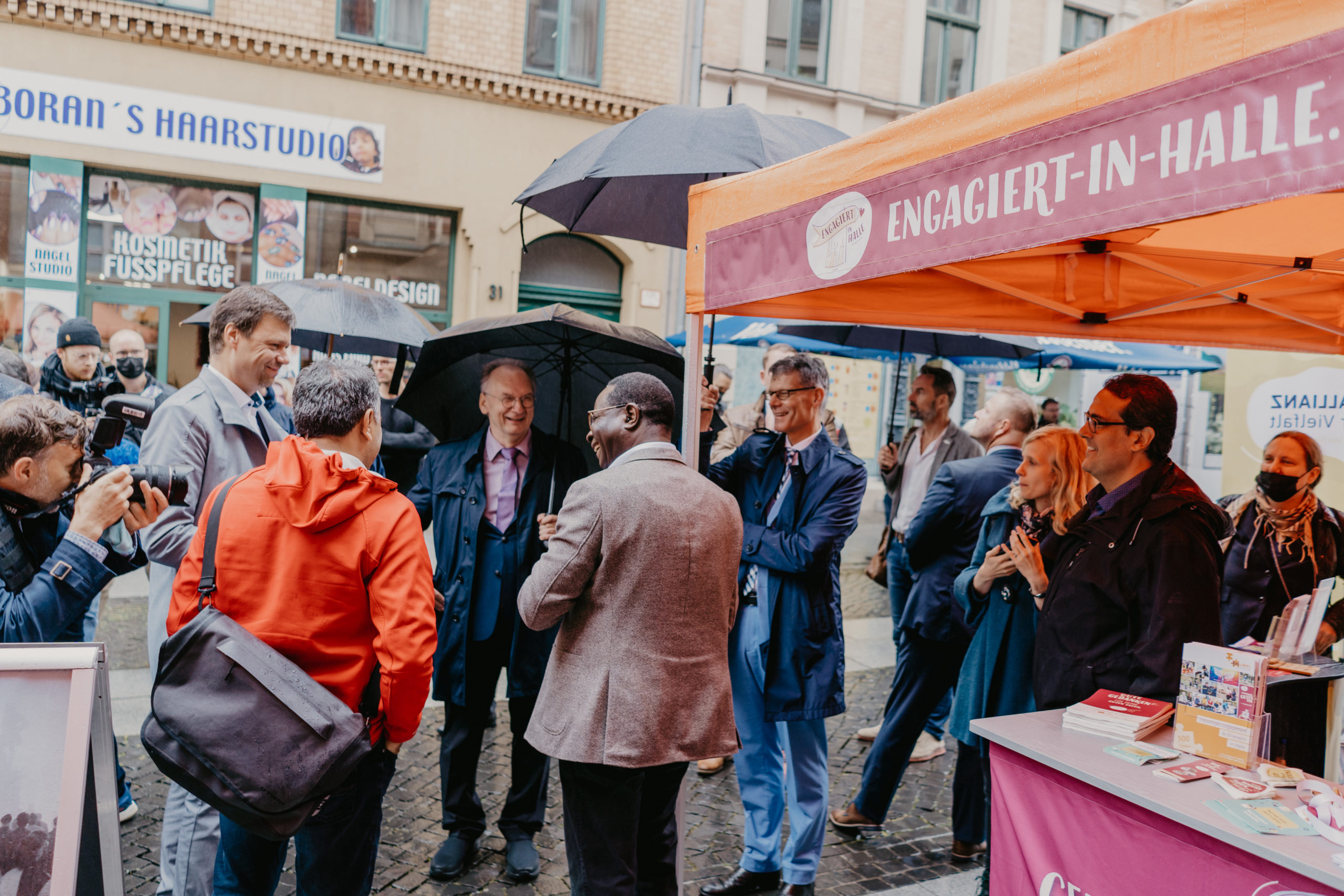 Den Auftakt machte am 18. September die zivilgesellschaftliche Eröffnungsfeier der EinheitsEXPO. Trotz regnerischem Wetter waren rund 30 Personen vor dem Beratungsladen der Freiwilligenagentur zusammengekommen. Und auch Ministerpräsident Dr. Reiner Haseloff stattete uns auf seiner Tour durch die Stadt einen Besuch ab. Die Gäste Dr. Karamba Diaby (MdB) und Thomas Heppener, Programmleiter von „Demokratie leben!“ im Bundesfamilienministerium, betonten, dass Demokratie kein Selbstläufer ist, sondern wir als Zivilgesellschaft uns kontinuierlich für sie einsetzen müssen.