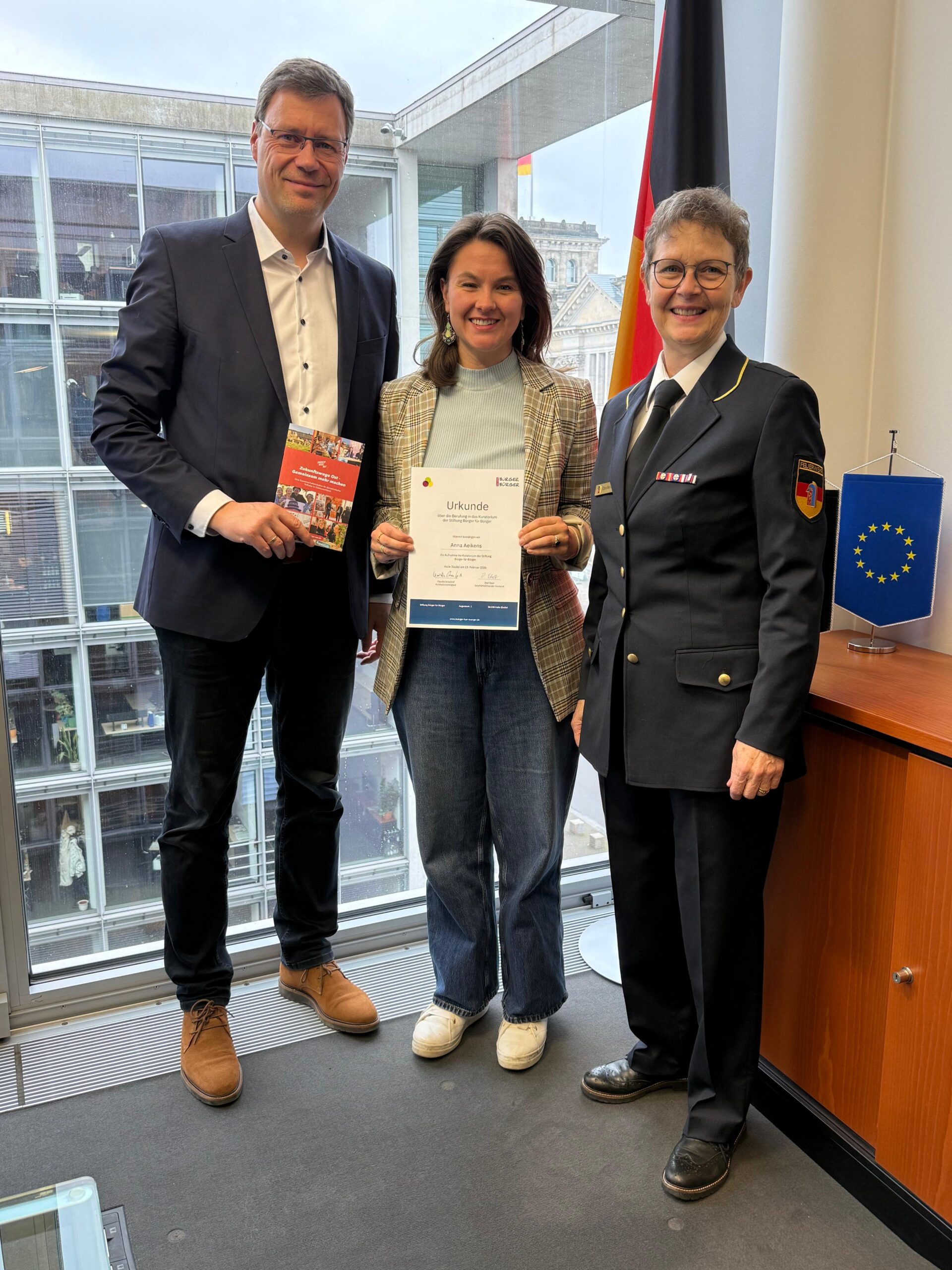v.l.n.r.: Olaf Ebert (Geschäftsführender Vorstand), Anna Aeikens, MdB und Claudia Crawfort (Kuratorium)